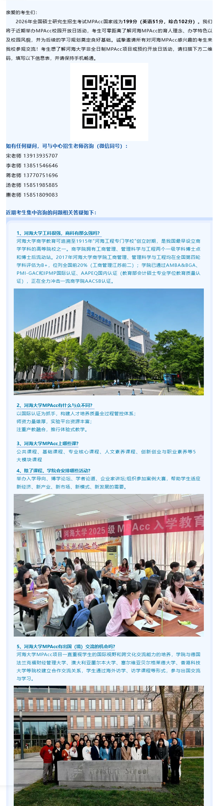 考生速览 | 2026年河海大学非全日制MPAcc招生咨询暨校园开放日预约